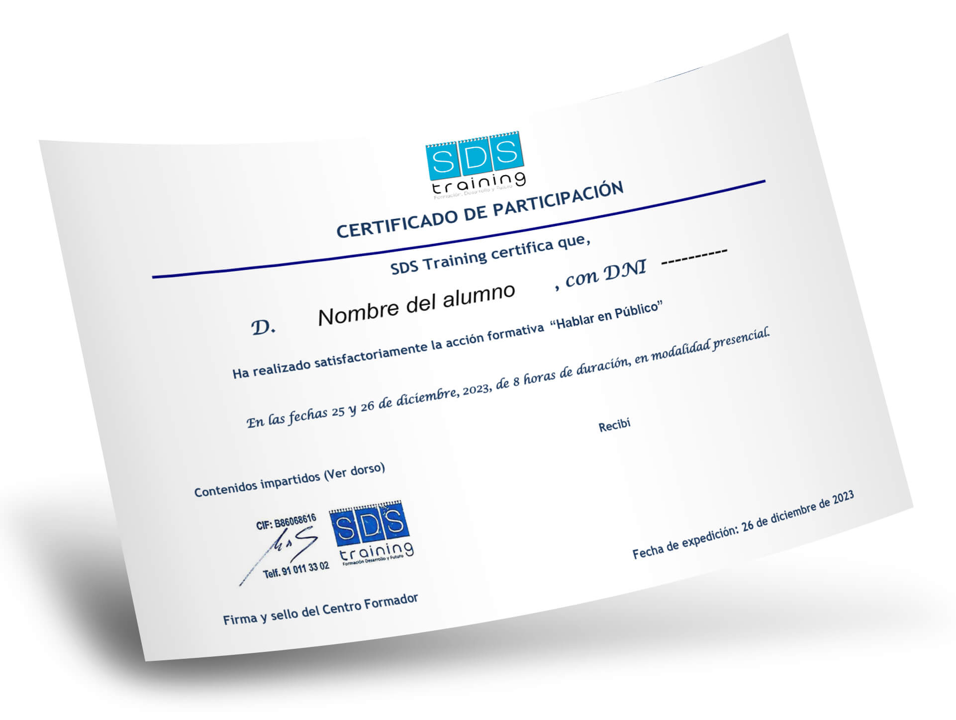 Al completar nuestro curso de Comunicación Efectiva y Hablar en Público a medida, no solo habrás mejorado tus habilidades en esta herramienta sino que también habrás obtenido un certificado de participación.